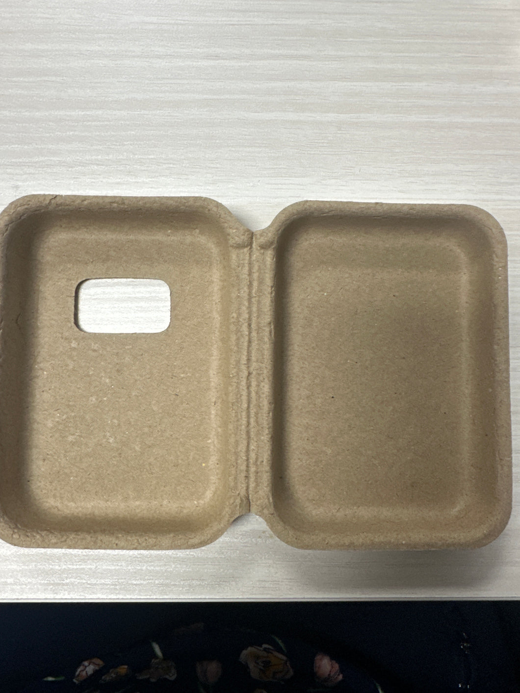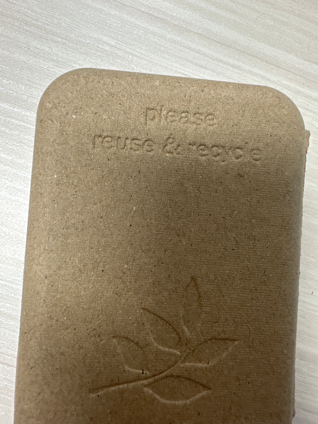 Environmentally friendly clamshells packaging made from recycled cardboard and 100% recyclable. no bleach – no dyes – no glue